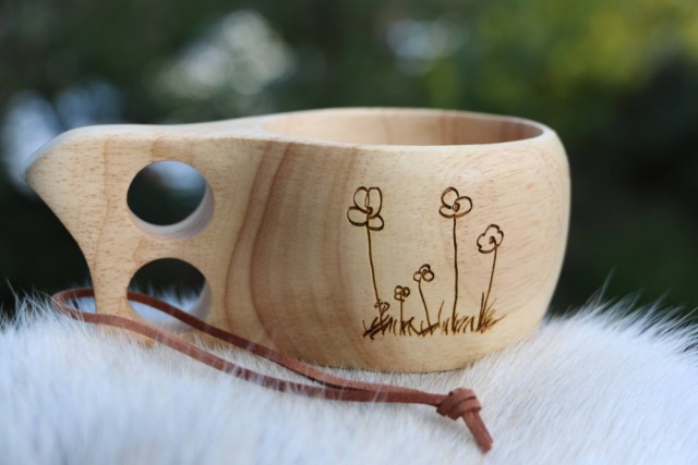 Ekstra koselig med en barnetegningpå et produkt man gjerne bruker på tur eller når man vil kose seg litt ekstra.