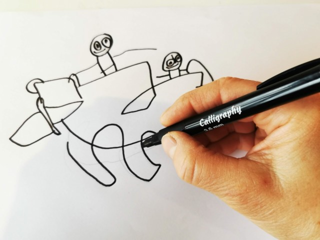 1. Lag en tegnig på et hvitt ark. Tegningen må være tegnet med svart tusj, så har du en tegning med blyant så venligst tegn over strekene med tusj.