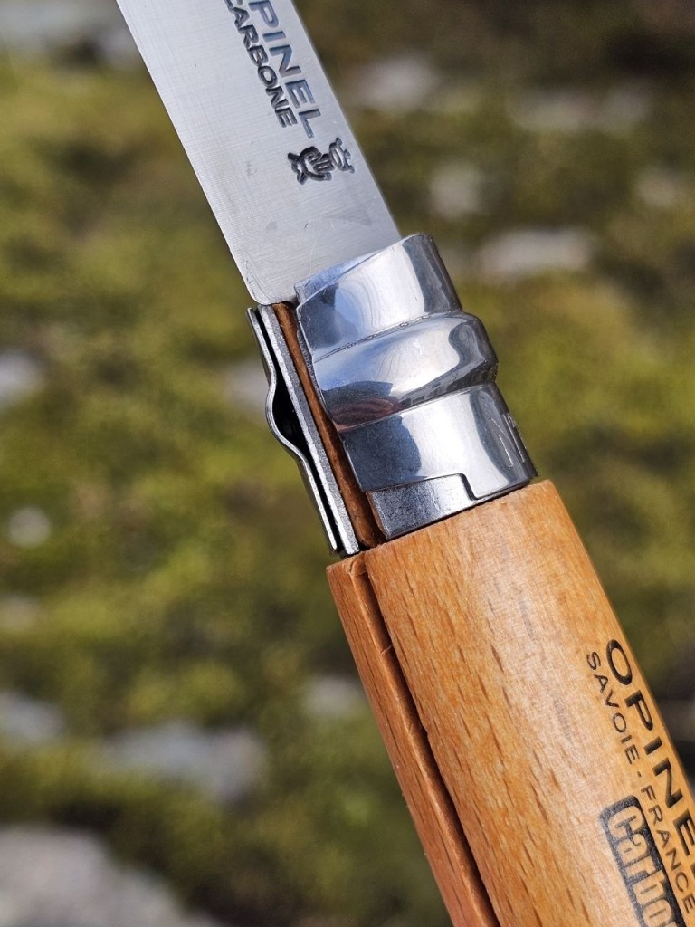 Kvalitetskniv fra Franske OPINEL med carbone blad og treskaft.