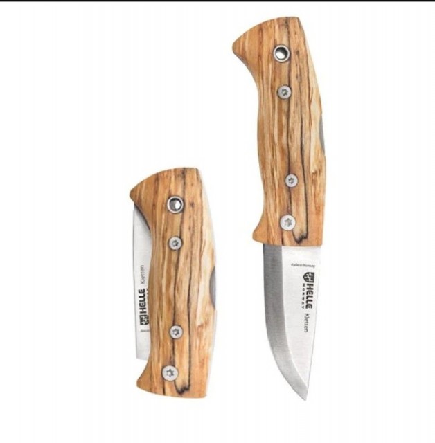 Kletten er Helle sin første egenutvikla lommekniv. Her får du en kniv som i låst tilstand føles som en fast, liten sportskniv. Med et kraftig blad i klassisk laminert stål er dette en særs stødig turvenn som tek minimalt med plass i lomma.