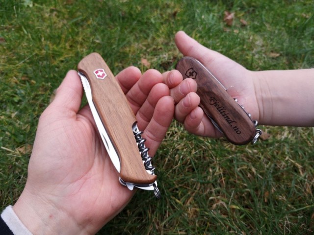 Eksempel på gravert skaft på denne kniven Størrelsesforhold til vårt utvalg av wood lommekniver Lommekniv i den størrelsen du ønsker:) Skrifttyper vi har. Skriftype 1 og 2 er standard og ingen ekstra betaling for. Victorinox Evolution Wood 10 - Rask levering med gravering Svært praktisk kniv som tar minimal plass i lommen, men som allikevel har de gode funksjonene en ekte lommekniv skal ha. NOK798,00 inkl. mva. På lager: 5 stk. SkaftIngen graveringGravert tekst på skaft +150,00Skrifttype (se bildeserie):Skrifttype 1 (standard.)Skrifttype 2 (standard)Spesial Skrifttype 3 +29,00Spesial Skrifttype 4 +29,00Spesial Skrifttype 5 (har kun små bokstaver) +29,00Spesial Skrifttype 6 +29,00Spesial Skrifttype 7 +29,00Spesial Skrifttype 8 +29,00Spesial Skrifttype 9 +29,00Spesial Skrifttype 10 +29,00Spesial Skrifttype 11 +29,00Spesial Skrifttype 12 +29,00Spesial Skrifttype 13 +29,00Spesial Skrifttype 14 +29,00 Antall Dersom du har valgt gravering i feltet over, fyller du inn ønsket tekst i feltet under. Viktig at du skriver navn/tekst korrekt. Vil du ta i bruk dette valget? Ja Nei Kjøp Ønskeliste Vipps hurtigkasseKjøp nå med Vipps hurtigkasse Del dette Produktinfo Victorinox Evowood 10 Swiss Army Delemont samling med valnøtt håndtak. Lengde: 85mm Nettovekt: 54g