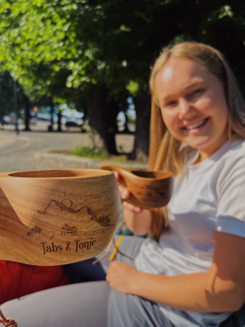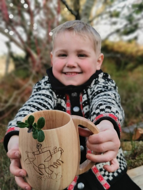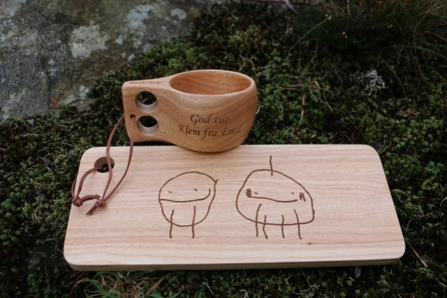 Ekstra koselig med en barnetegningpå et produkt man gjerne bruker på tur eller når man vil kose seg litt ekstra.