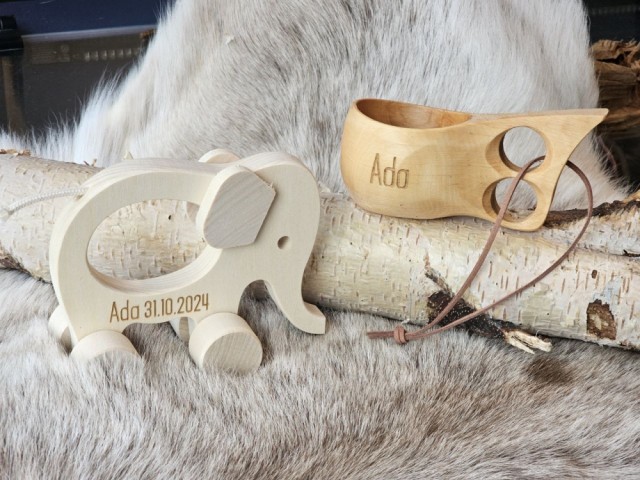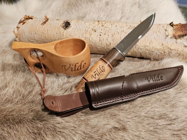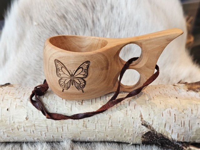Eksklusiv håndlaget trekopp av Nordisk løvtre. Håndtak for 2-finger grep, ca 6,5 cm i diameter. Utmerket å gravere på !