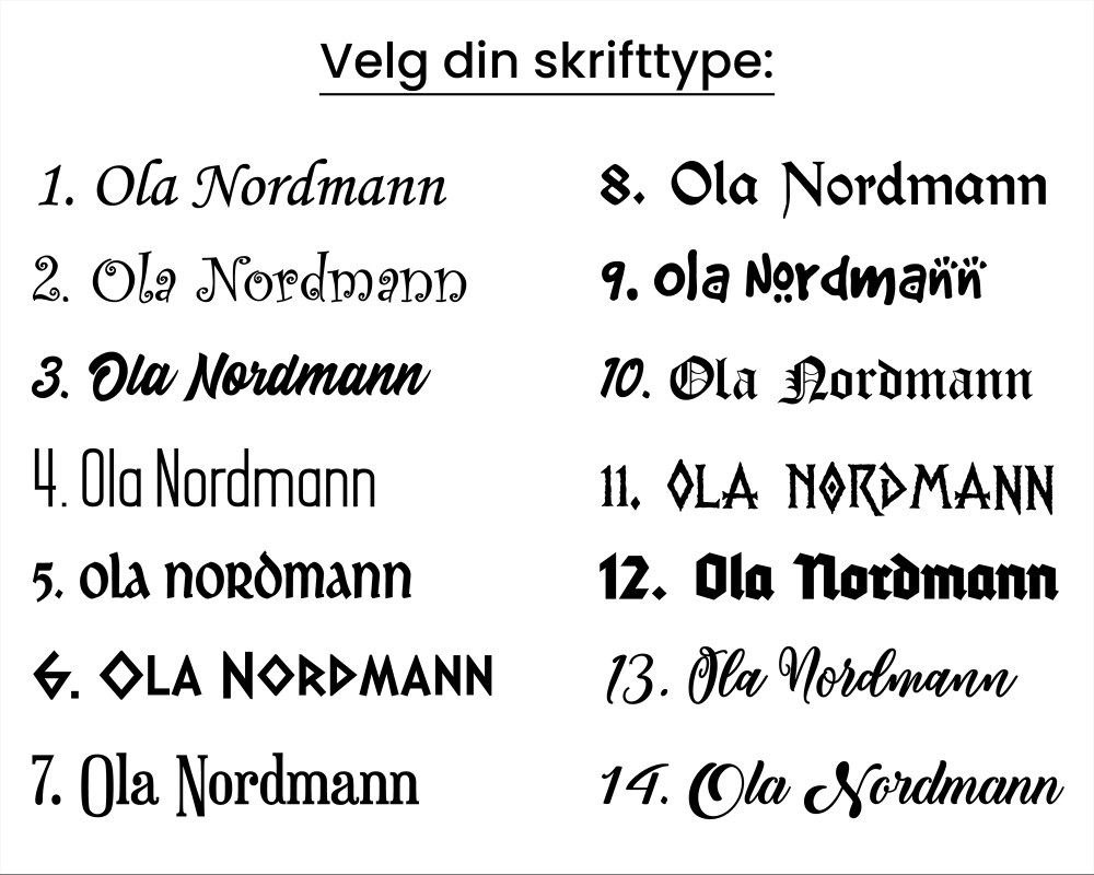 Velg skrifttype og skriv tekst i tekstfeltet.