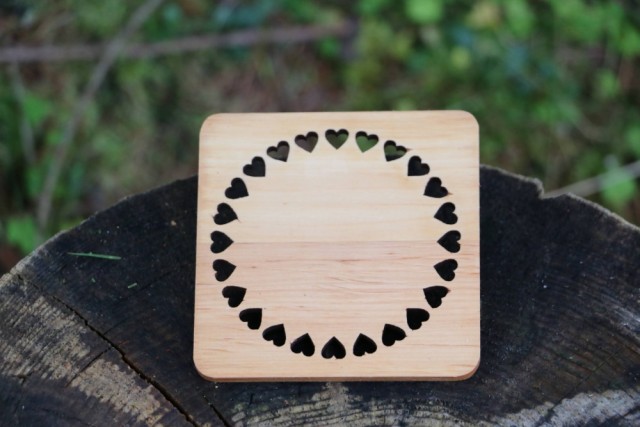 Brikke for koppe eller glass . Koselig med hjertemotiv. Utmerket å gravere på.
